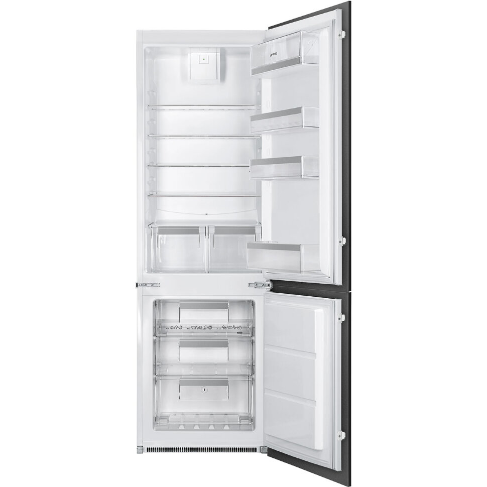 Встраиваемый холодильник SMEG C8173N1F предназначен для кратковременного хранения различных готовых блюд, охлаждённых продуктов и напитков, а также для заморозки и длительного хранения замороженных продуктов и полуфабрикатов. Внутри холодильной камеры расположены полки из закалённого стекла, благодаря чему выдерживают большую нагрузку. Данная модель идеально подходит для встраивания в объёмный гарнитур на просторной кухне.