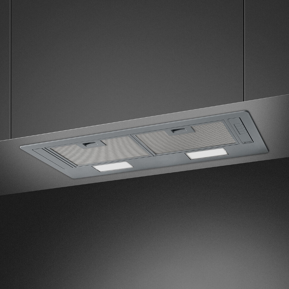 Встраиваемая вытяжка SMEG KSG70HE предназначена для очистки воздуха от дыма, запахов и различных загрязнений, а также для защиты мебели и стен от жирового налёта, неизбежно возникающих при приготовлении пищи. Модель оснащена 2 жироулавливающими фильтрами из алюминия.